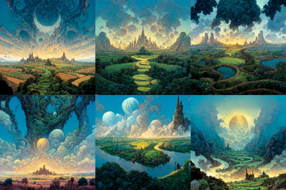 Fantasy landscapes in the style of Arthur Adams for use as backdrops or printing. Created in Midjourney and upscaled using Gigapixel. There are 18 images, 6 for each aspect ratio - 16:9, 9:16 and 1:1. Purchased images are much higher resolution.